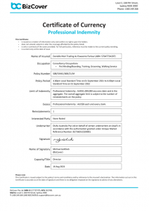 c) we provide a Certificate of Currency which can be provided to third parties.